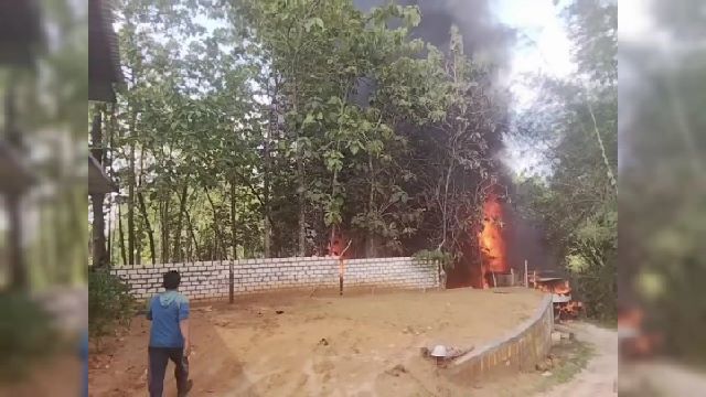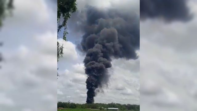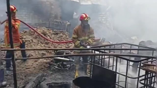 Video amatir ini merekam asap hitam yang membumbung tinggi, tanda si jago merah sedang mengamuk di dalam area gudang.