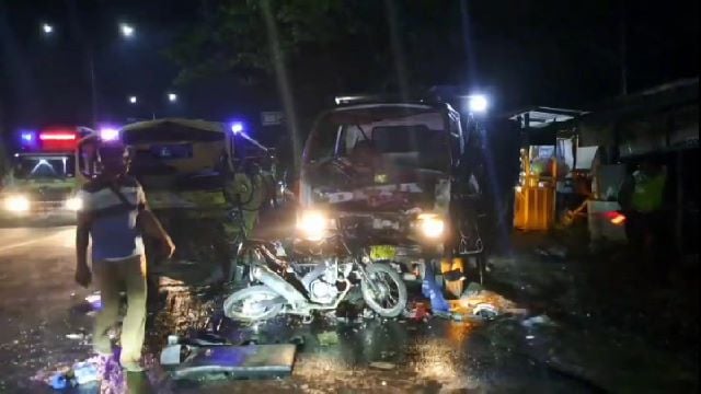 Kecelakaan ini melibatkan dua unit truk yang melaju dari arah barat ke timur. Kedua truk tersebut bertabrakan dari sisi kanan dan kiri, sementara sepeda motor Yamaha Vixion berwarna hitam yang berada di antaranya hancur terjepit benturan keras.