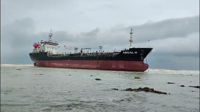 Kapal tanker MT Abigail W dilaporkan larat dan kandas setelah tak mampu melawan kuatnya terpaan angin dan gelombang laut.