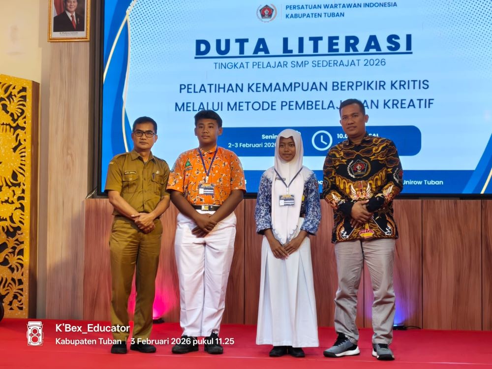 TUBAN, iNewsTuban.id - Persatuan Wartawan Indonesia (PWI) Kabupaten Tuban, Jawa Timur menggelar kegiatan Duta Literasi Pelajar Sekolah Menengah Pertama (SMP)/Sederajat se-Kabupaten Tuban.