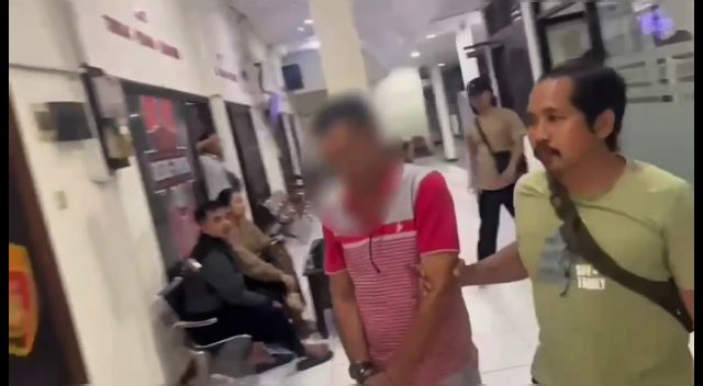 Pelaku justru hanya bisa tertunduk lesu saat digelandang petugas Reserse Kriminal Polres Tuban, keluar dari mobil operasional menuju ruang pemeriksaan.