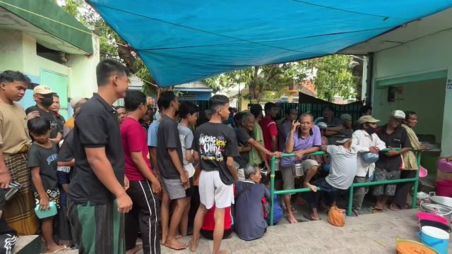 Tradisi Ramadan, Ratusan Warga Antre Bubur Mudhor Gratis, Uniknya yang Memasak Kaum Laki-laki