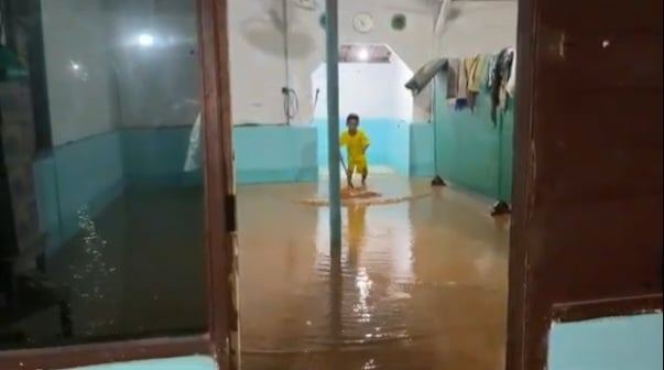 Bahkan, sebuah mushola juga ikut terendam air setinggi satu meter, membuat warga tidak bisa menunaikan salat isya dan tarawih.