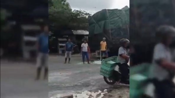 Mirisnya, karena belum ada perbaikan menyeluruh, sejumlah warga yang tinggal di sekitar jalan tersebut berinisiatif menambal lubang dengan material batu kapur secara swadaya.